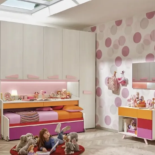 Con questa cameretta KC416 Moretti Compact Camerette, tra le soluzioni a ponte, potrai arredare stanze moderne per bambine.