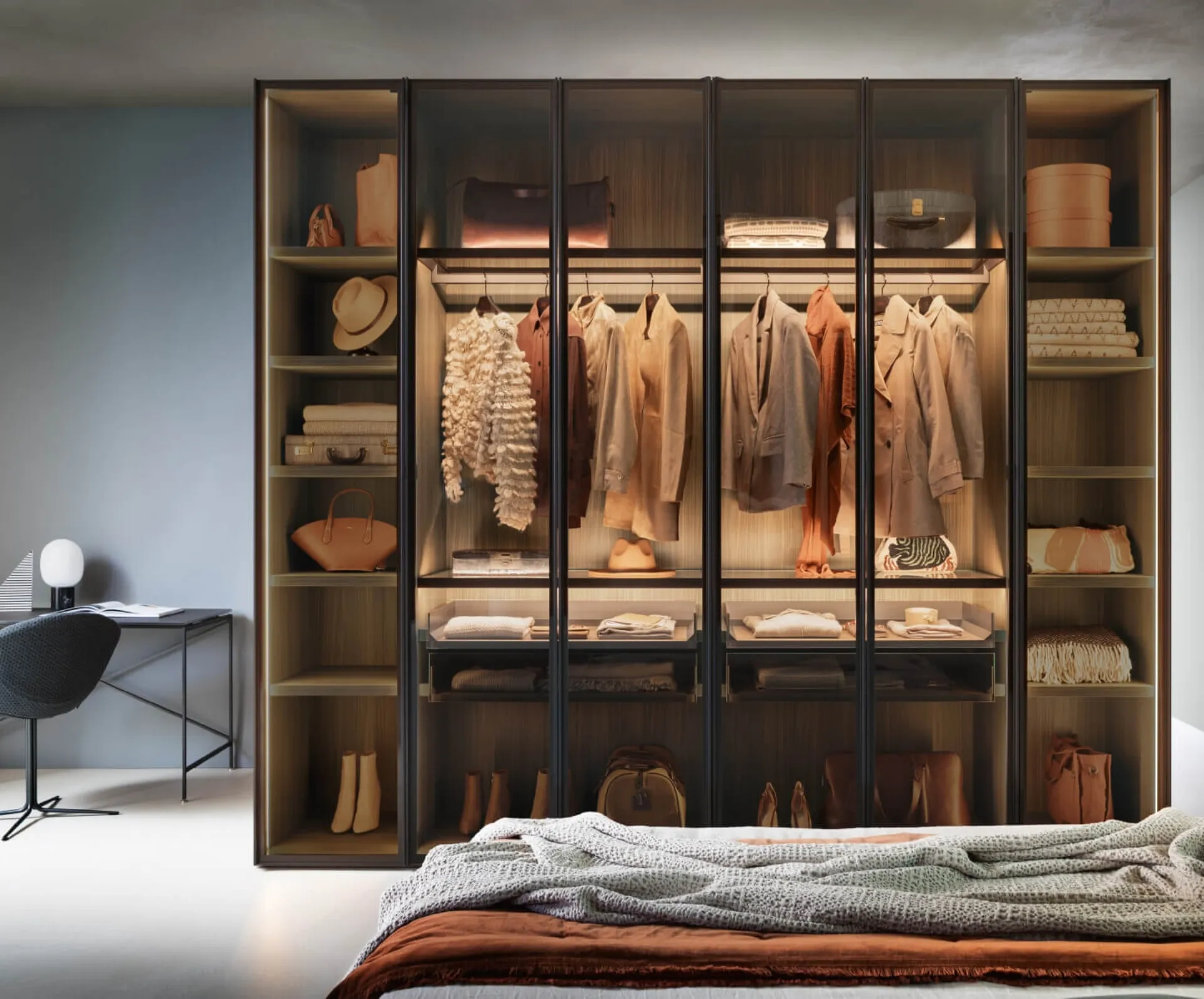 Eccoti l'armadio Alterna SM2504 in vetro di Zalf! Un ricco catalogo di armadi a muro con ante a soffietto.