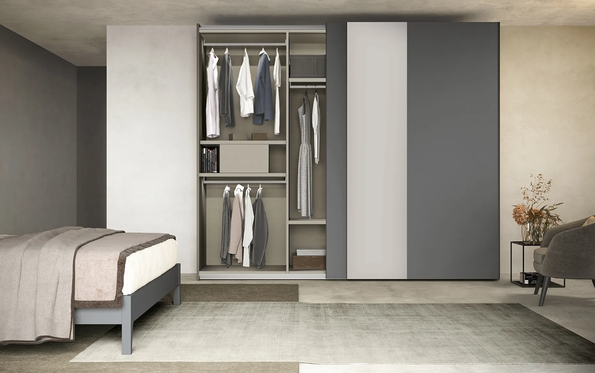 Eccoti l'armadio Freedom N17 in melaminico di Colombini Casa! Un ricco catalogo di armadi a muro con ante scorrevoli.