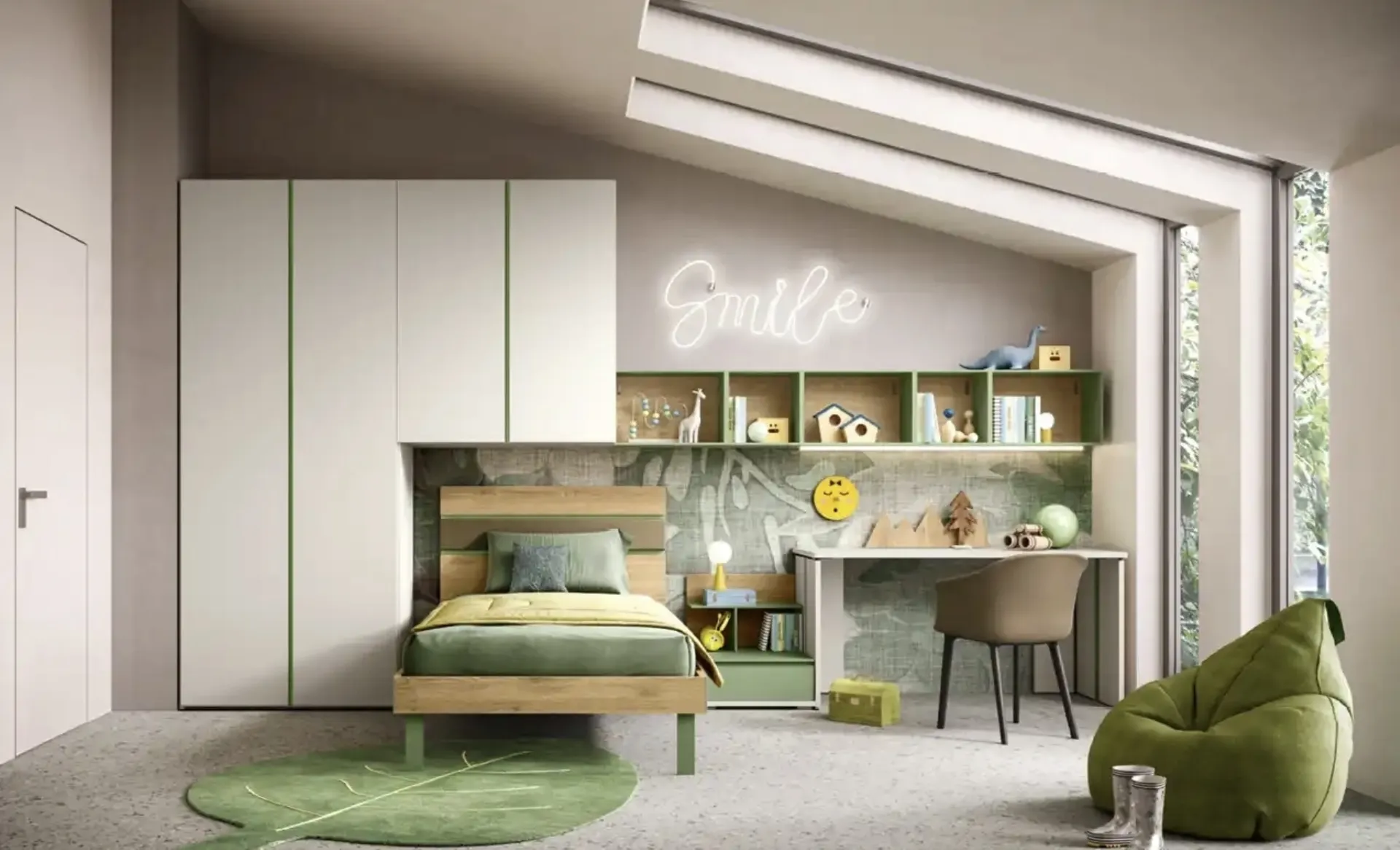 Con questa cameretta K104 Moretti Compact Camerette, tra le soluzioni a ponte, potrai arredare stanze moderne per bambini.