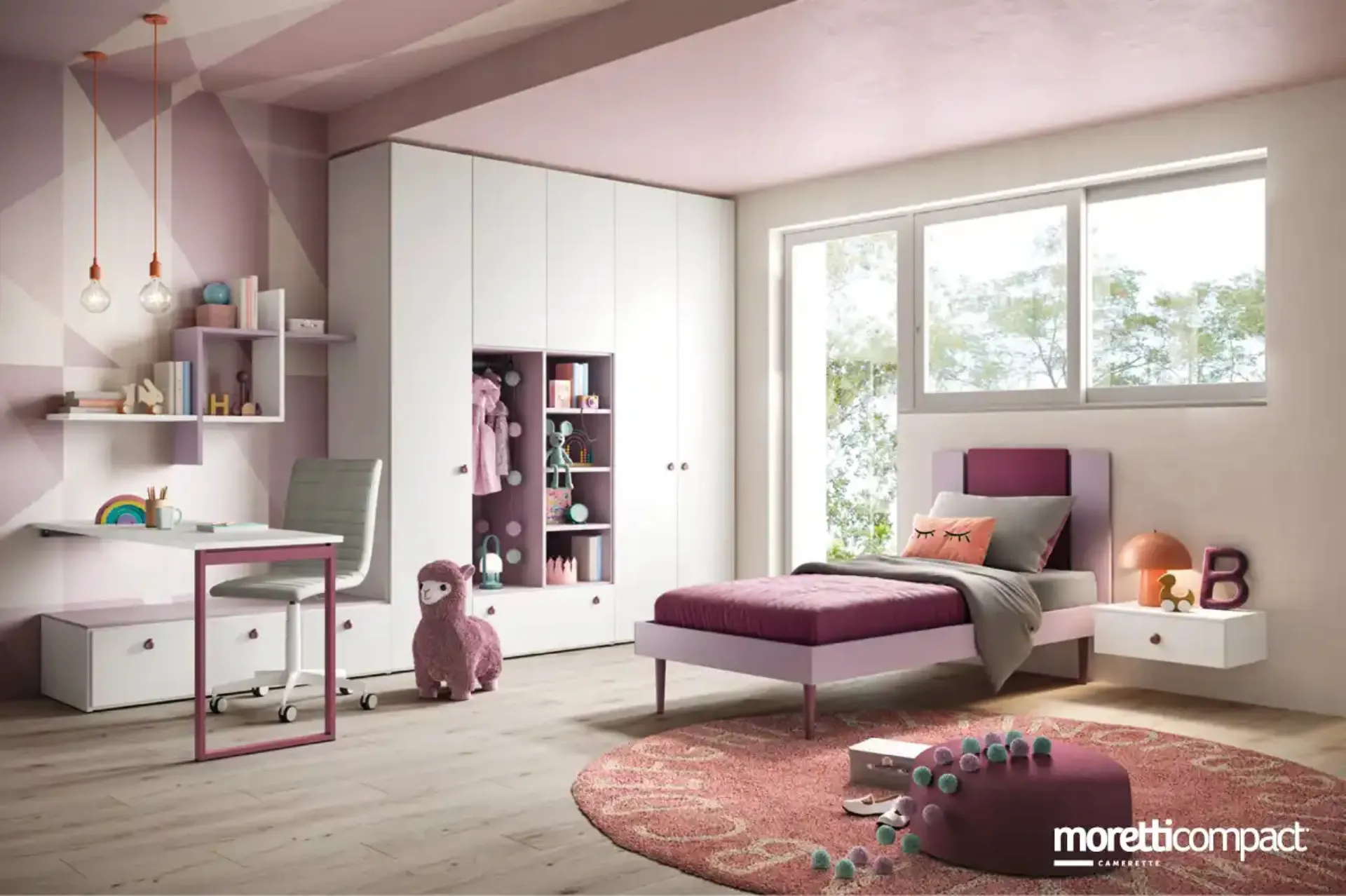 Con questa cameretta K112 Moretti Compact Camerette, tra le soluzioni componibili, potrai ammobiliare stanze moderne per bambine.