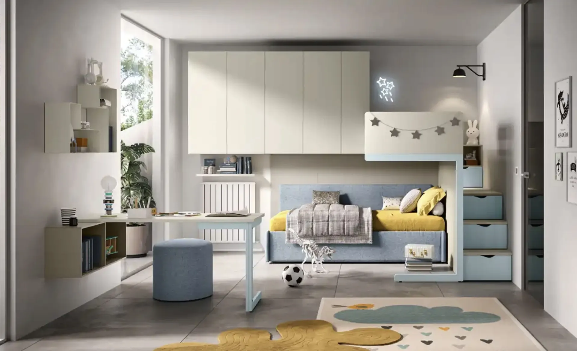 Moretti Compact Camerette asseconda lo stile dei piccoli e le esigenze dei genitori con le sue Camerette moderne a soppalco, ideali per necessità di ogni tipo. Vieni in negozio e potrai visionare in prima persona tutte le più belle composizioni d'arredo a soppalco moderne di Moretti Compact Camerette per i più piccoli. Con una composizione arredativa Moretti Compact Camerette, potrai ultimare con funzionalità e design lo spazio in cui i tuoi figli passano gli anni più importanti della vita. La Cameretta K118 di Moretti Compact Camerette in melaminico è un ambiente complesso da decorare attentamente, unendo vari elementi accessori su misura.