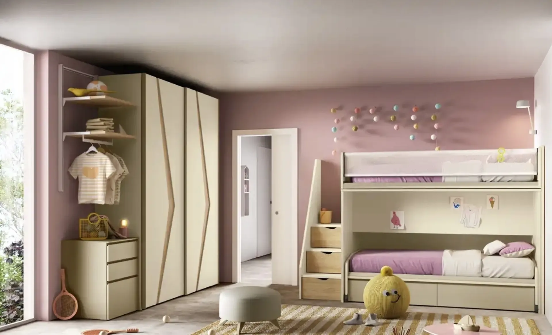 Clicca e scopri di più sulla cameretta per bambine K125! Le Camerette con letti a castello Moretti Compact Camerette ti aspettano.