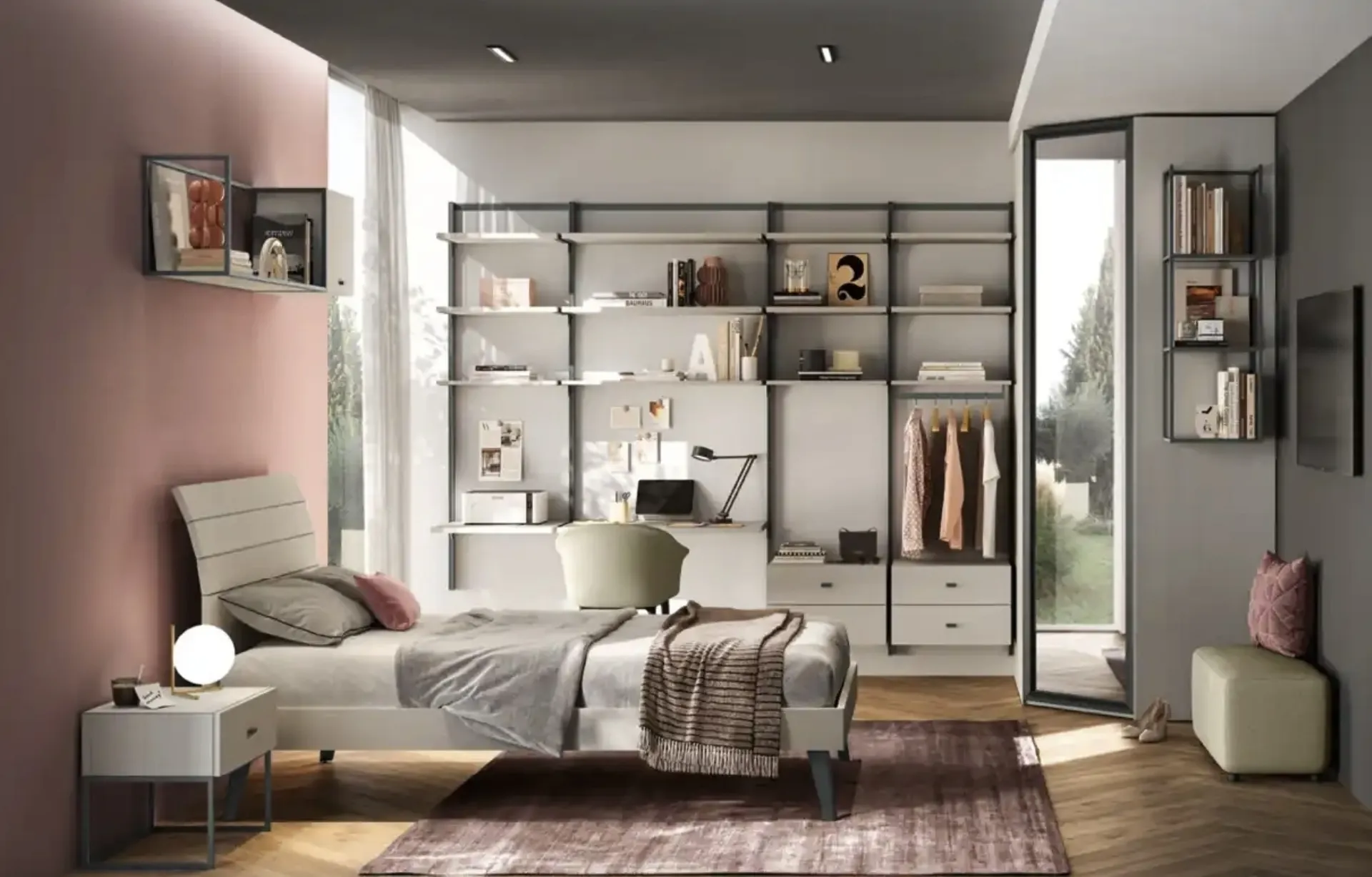 Con questa cameretta Y105 Moretti Compact Camerette, tra le soluzioni componibili, potrai allestire stanze moderne per ragazzi.