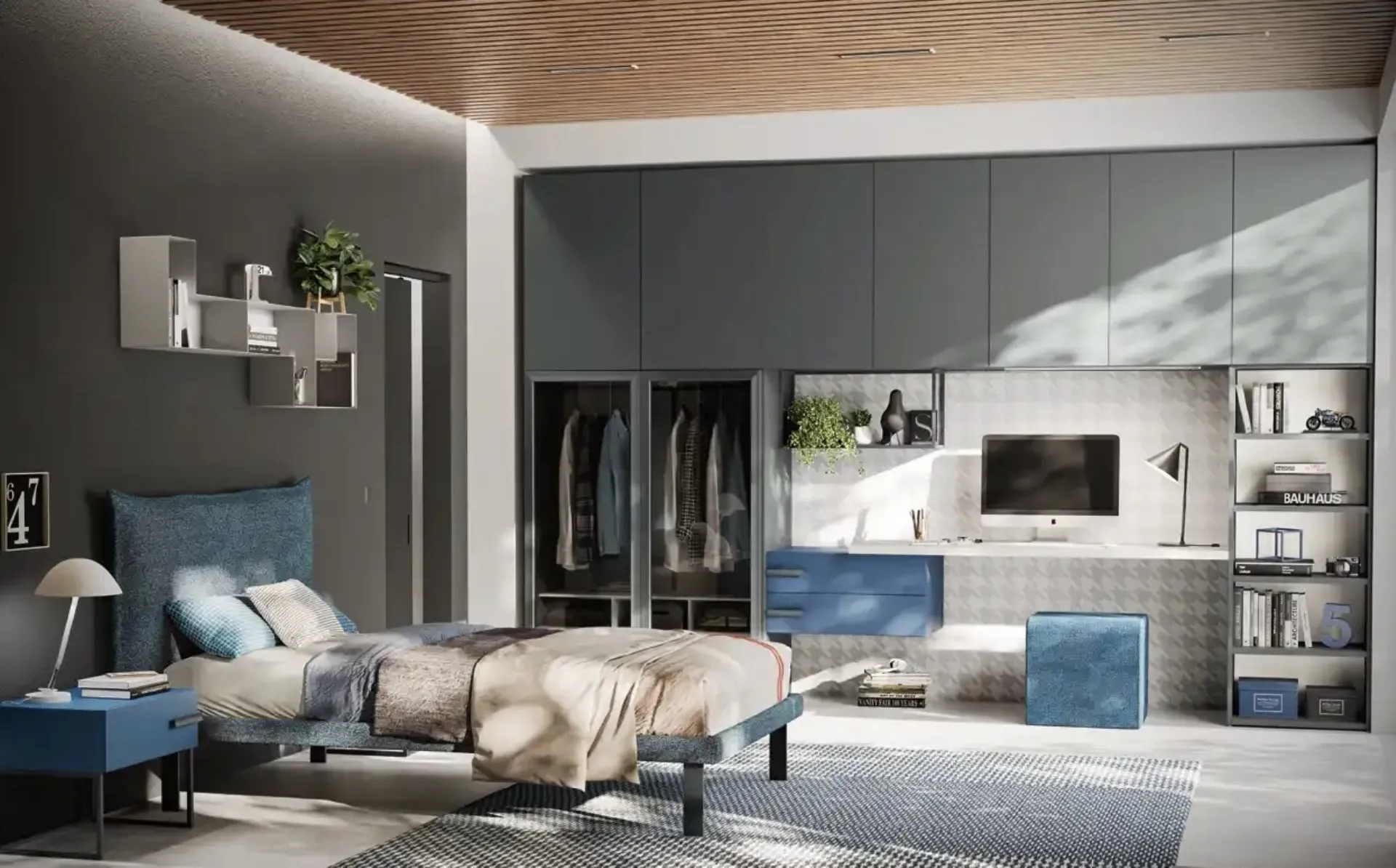 Nell'arredamento della stanza dei giovani affidati a noi: nel nostro punto vendita presentiamo tutte le più belle composizioni design per la loro camera. Moretti Compact Camerette mette a disposizione un ricco catalogo di accessori da comporre su misura: troverai letto, guardaroba, tavolo da lavoro, sedie e librerie. Se cerchi idee creative per arredare al meglio la stanza dei tuoi figli, ti presentiamo la Cameretta Y108 di Moretti Compact Camerette con finitura in laccato opaco. Questa proposta in laccato opaco ultima al meglio le doti di funzionalità e l'estetica della camaretta, in quanto è capace di abbinare funzionalità ed ergonomia.