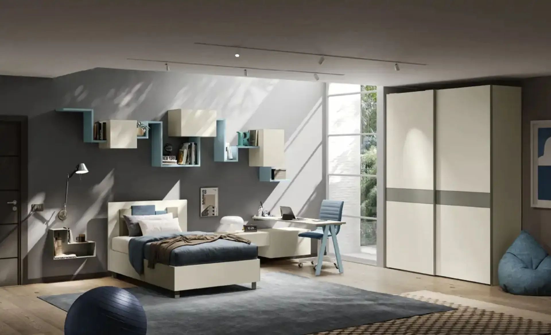 Con questa cameretta Y118 Moretti Compact Camerette, tra le soluzioni componibili, potrai progettare stanze moderne per ragazzi.