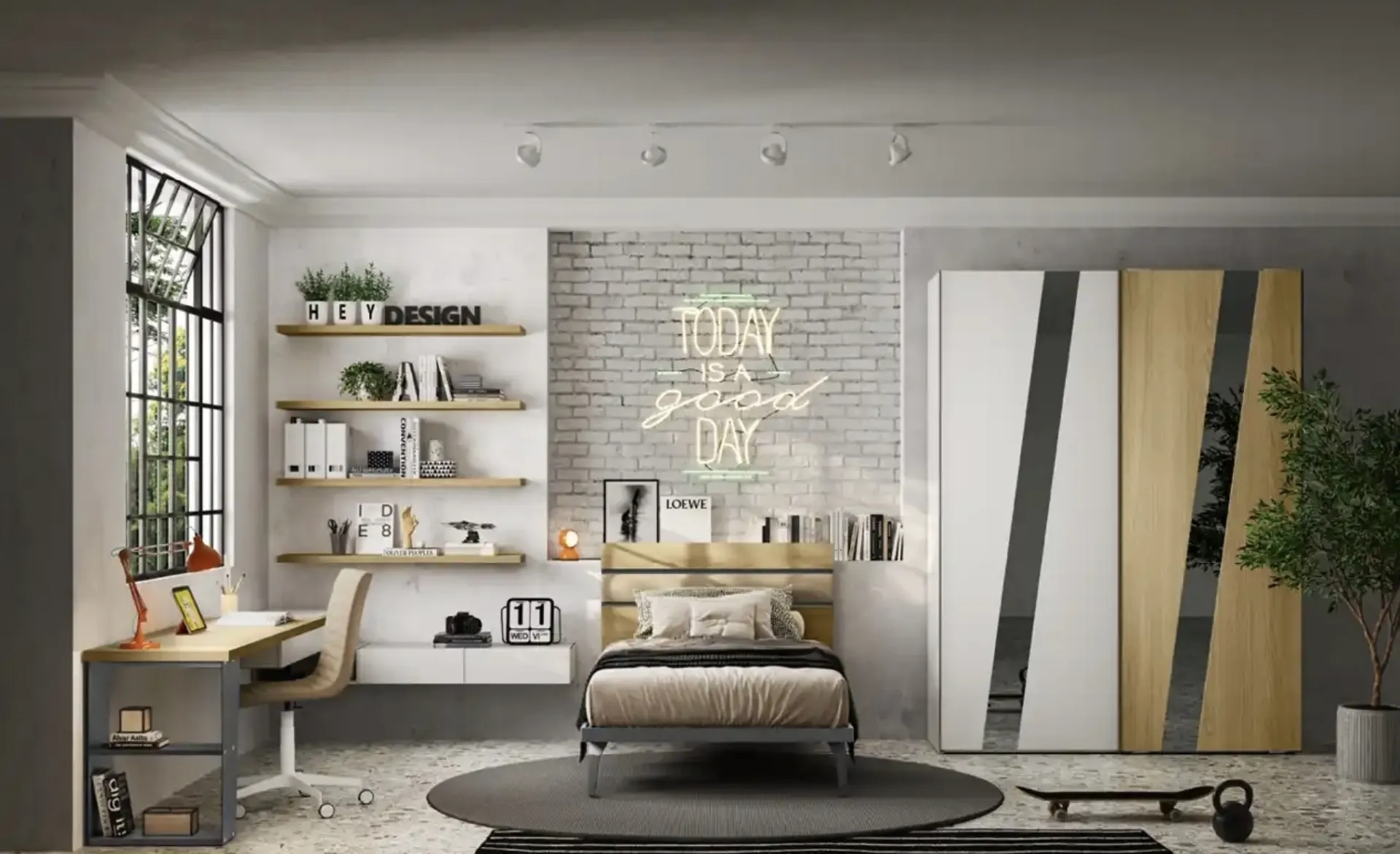 Con questa cameretta Y119 Moretti Compact Camerette, tra le soluzioni componibili, potrai ammobiliare stanze moderne per ragazzi.