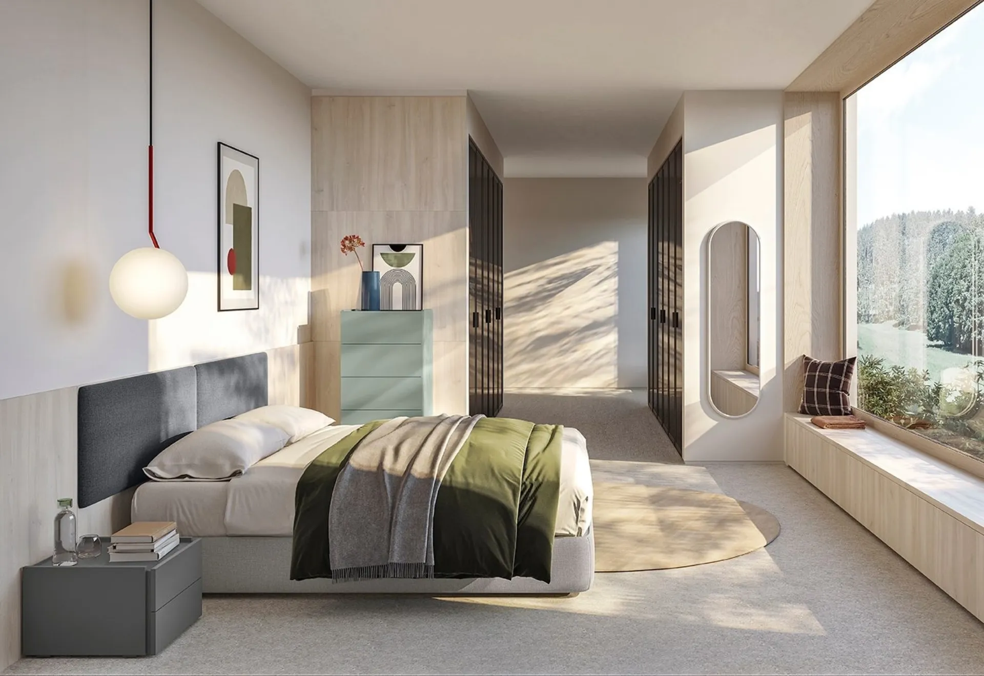 Una ricca gamma di mobili con cassetti Colombini Casa: i comodini moderni in melaminico, come Tower Gruppo Notte, sono tra le soluzioni più originali.