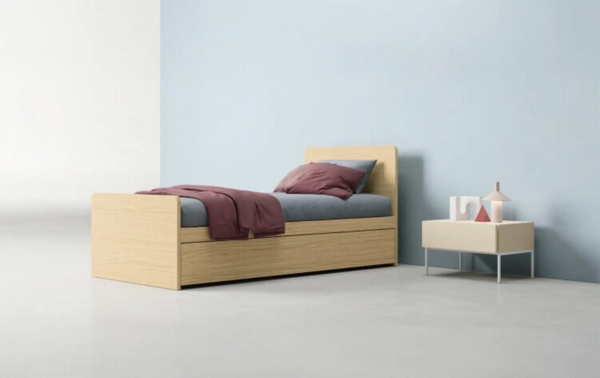 Se sei alla ricerca di letti singoli con testiera, ecco qui il modello Radius in melaminico per arricchire la stanza dei più piccoli.
