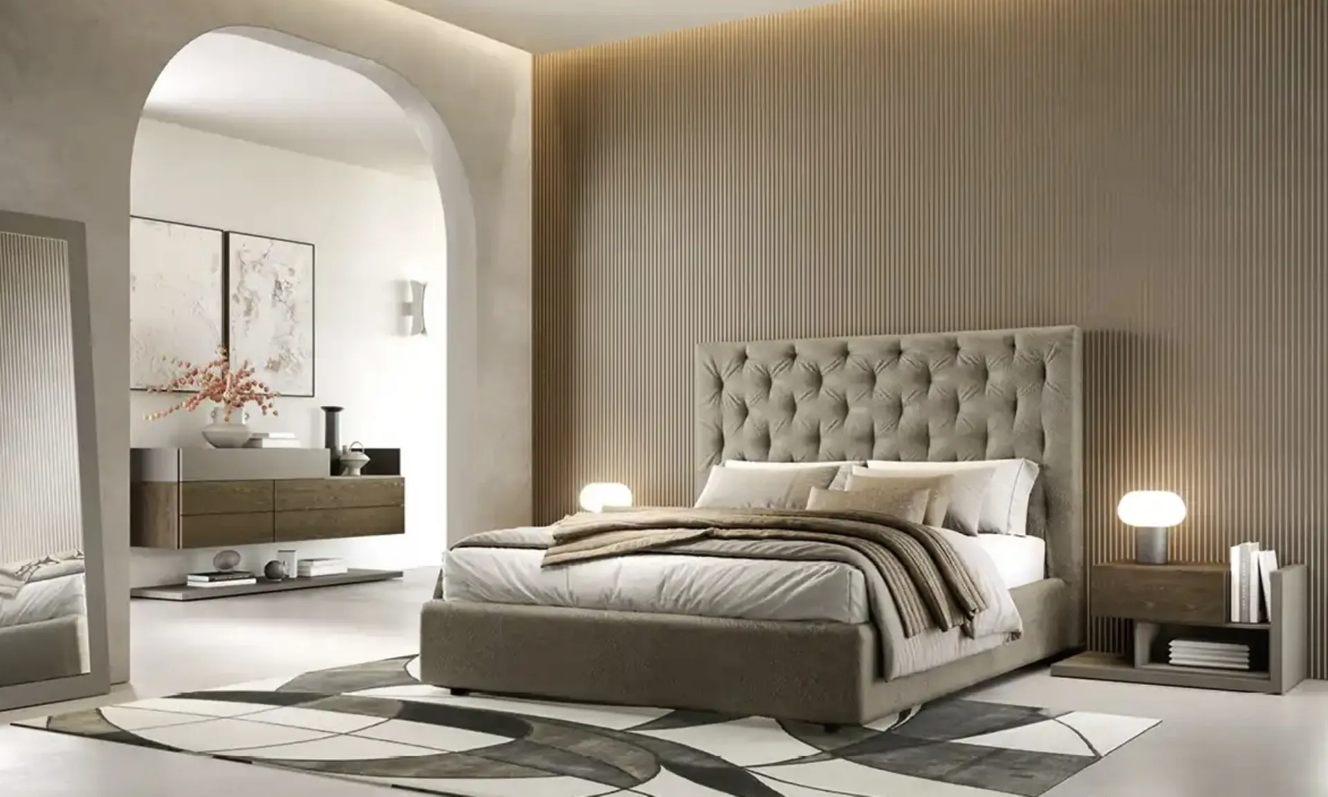Se desideri letti matrimoniali imbottiti, ti presentiamo il modello Merak M19 in ecopelle per impreziosire la zona notte.