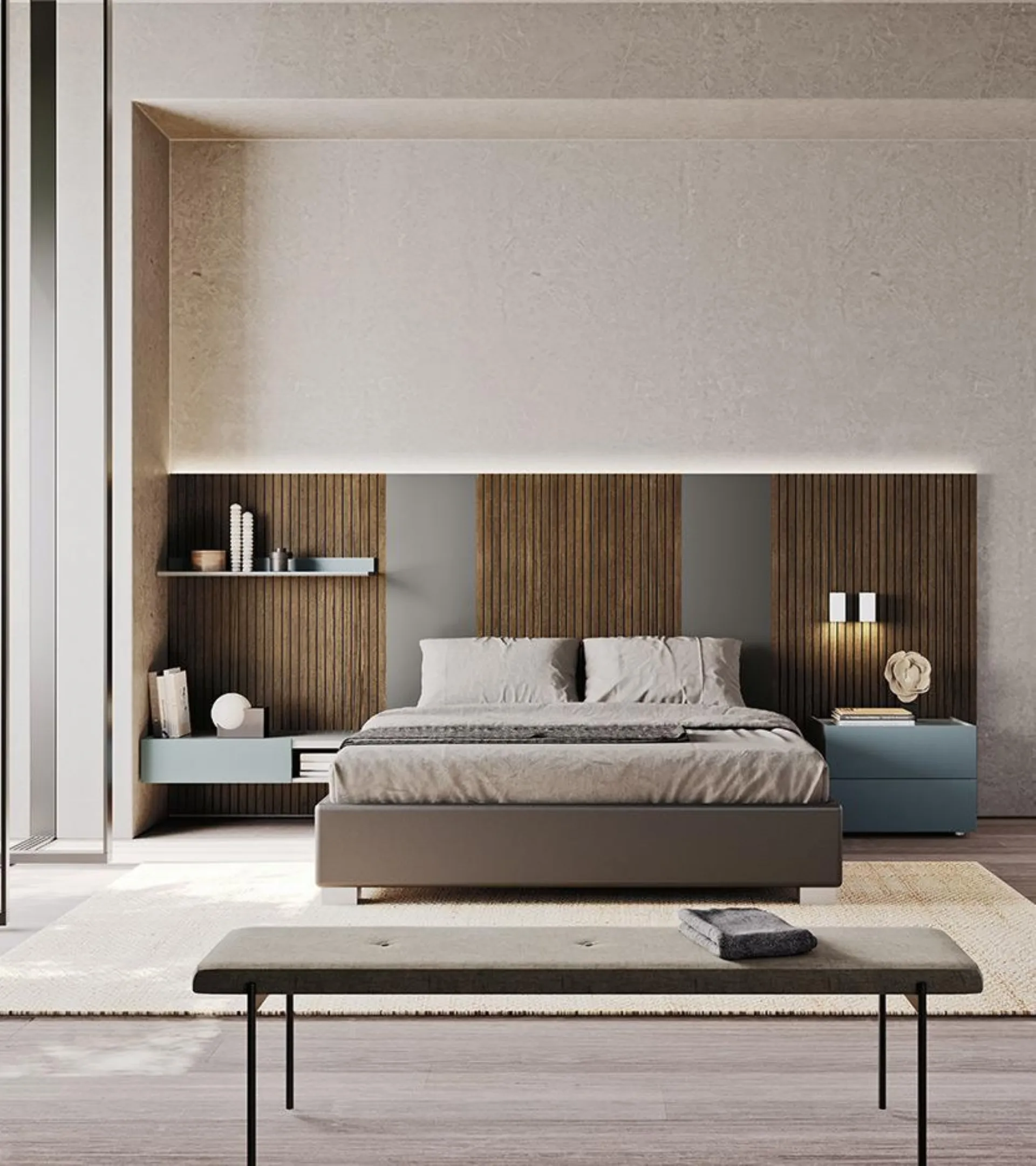 Clicca e scopri i Letti con testiera di Mobilgam! Il modello Sistema Sipario in legno ti sta aspettando nelle versioni matrimoniali.
