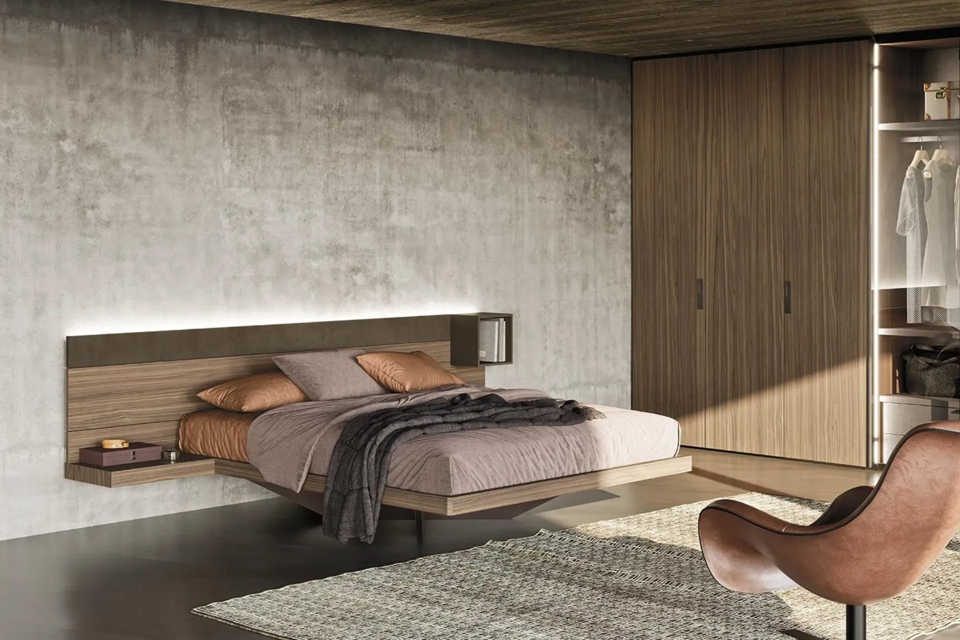 Durante l'acquisto di un buon modello di letto, valuta con cura le sue misure, le finiture, la forma e il suo stile rispetto al resto degli arredi. Il Letto matrimoniale Wall System N06 di Mobilgam ricrea uno spazio accogliente e confortevole in ogni zona notte, assicurandoti il relax totale e uno stile unico. Se vuoi una soluzione in legno, il modello presente in foto è connotato da materiali di qualità e forme decise, che invitano a trascorrere un riposo sereno e rigenerante. Scegli cromie e finiture e realizza il tuo concept d’arredo nella zona notte, progettandola proprio come l'hai sempre sognata.