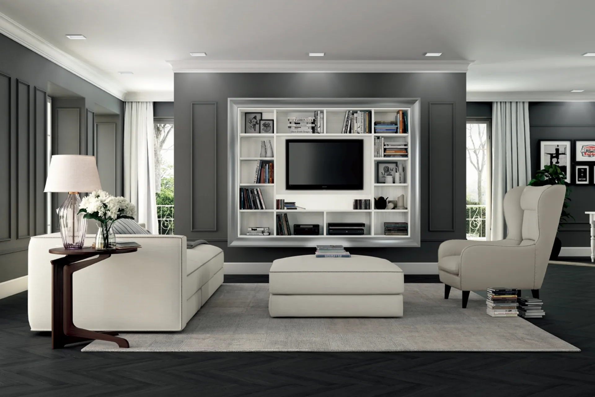 Il living è, in assoluto, la zona della casa in cui ci si dedica al relax ogni giorno, chiacchierando con familiari e amici, riposando in solitudine nonché guardando la televisione. Contattaci per info e preventivi sul modello mostrato in foto: se desideri completare stanze classiche, allora questa libreria dalle linee decise fa al caso tuo. Le Librerie classiche sono sempre tanto amate per progettare la zona giorno e le pareti, mixando alla perfezione doti di funzionalità e stile. La Libreria Arcadia AS007 di Colombini Casa nella fotografia, nella variante in melaminico, è davvero funzionale e versatile, solida e durevole, nonché caratterizzabile secondo le più personali problematiche abitative.