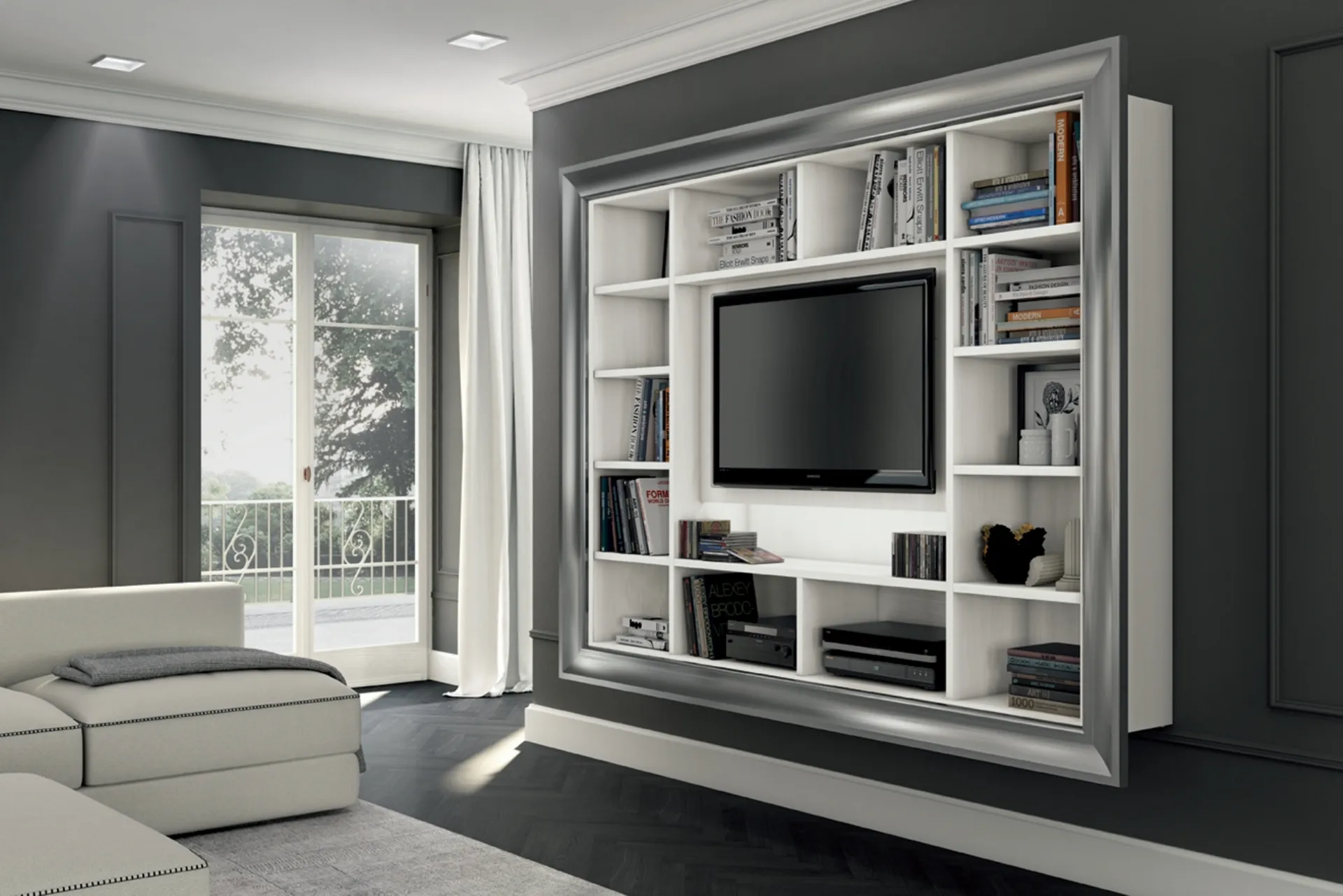 Se vuoi librerie sospese per il soggiorno, clicca e scopri le nostre soluzioni classiche: il modello Arcadia AS007 Colombini Casa ti aspetta!