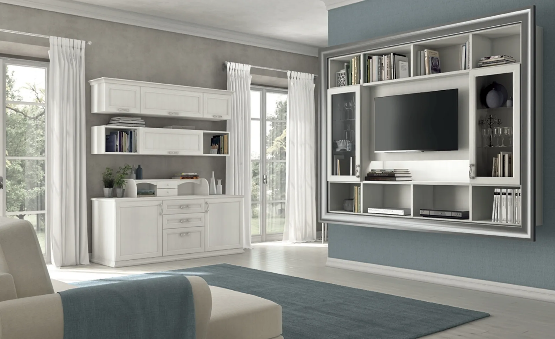 Vuoi rinnovare il soggiorno? Ottieni informazioni sulle librerie classiche sospese e arreda i tuoi spazi con il modello Arcadia AS019.