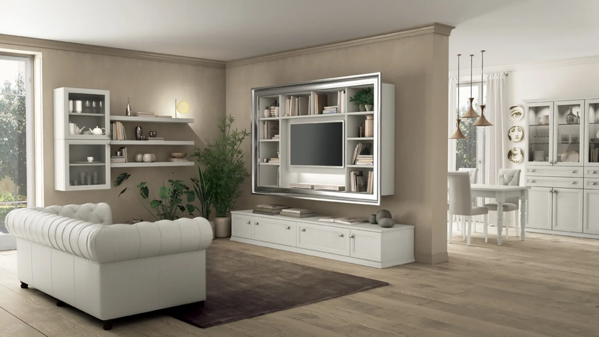 Vuoi ristrutturare la zona giorno? Ottieni informazioni sulle librerie classiche sospese e arreda i tuoi locali con il modello Arcadia AS012.
