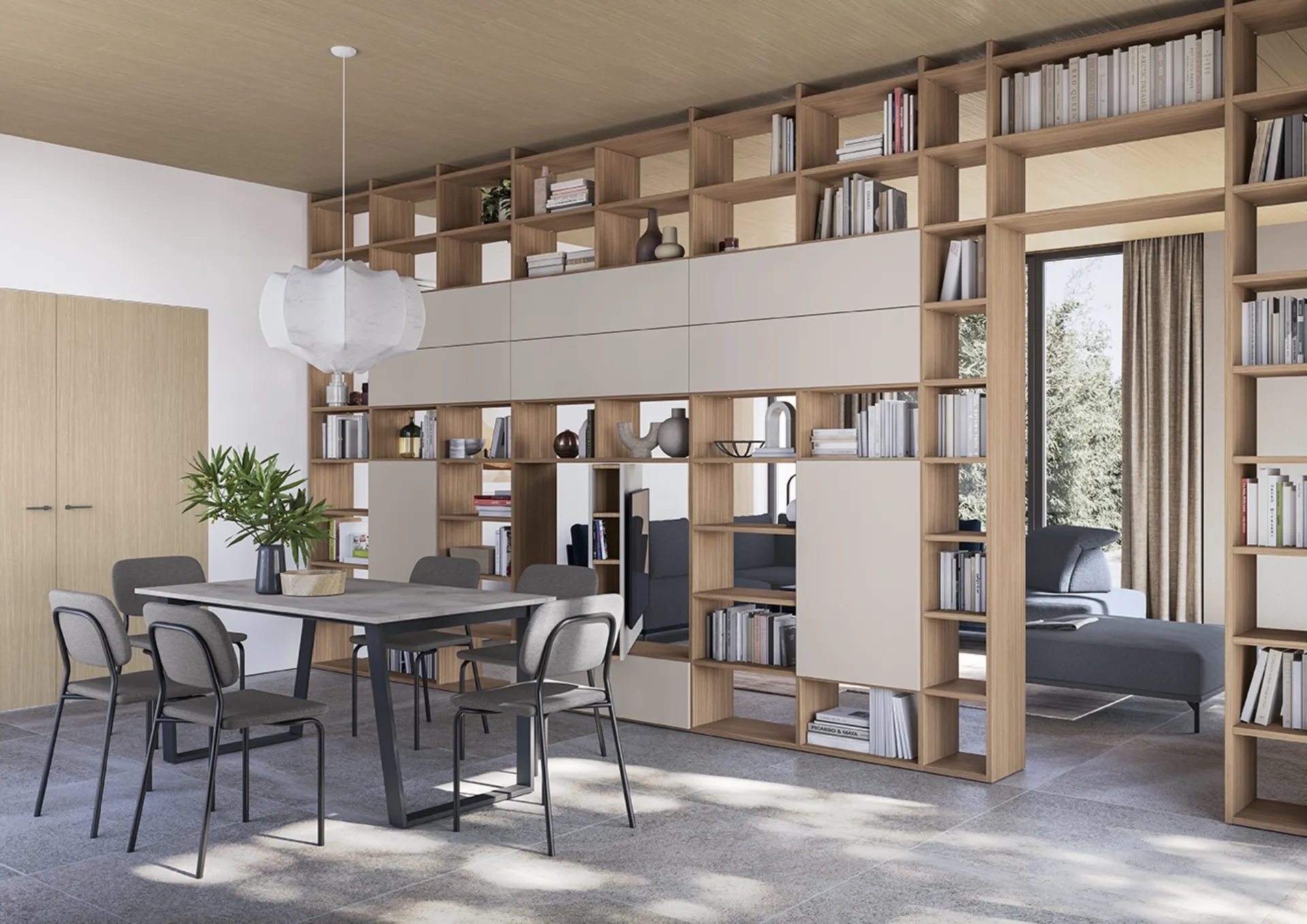 Librerie divisorie super funzionali per stanze moderne: ottieni informazioni sul modello Infinity L04 del brand Colombini Casa!