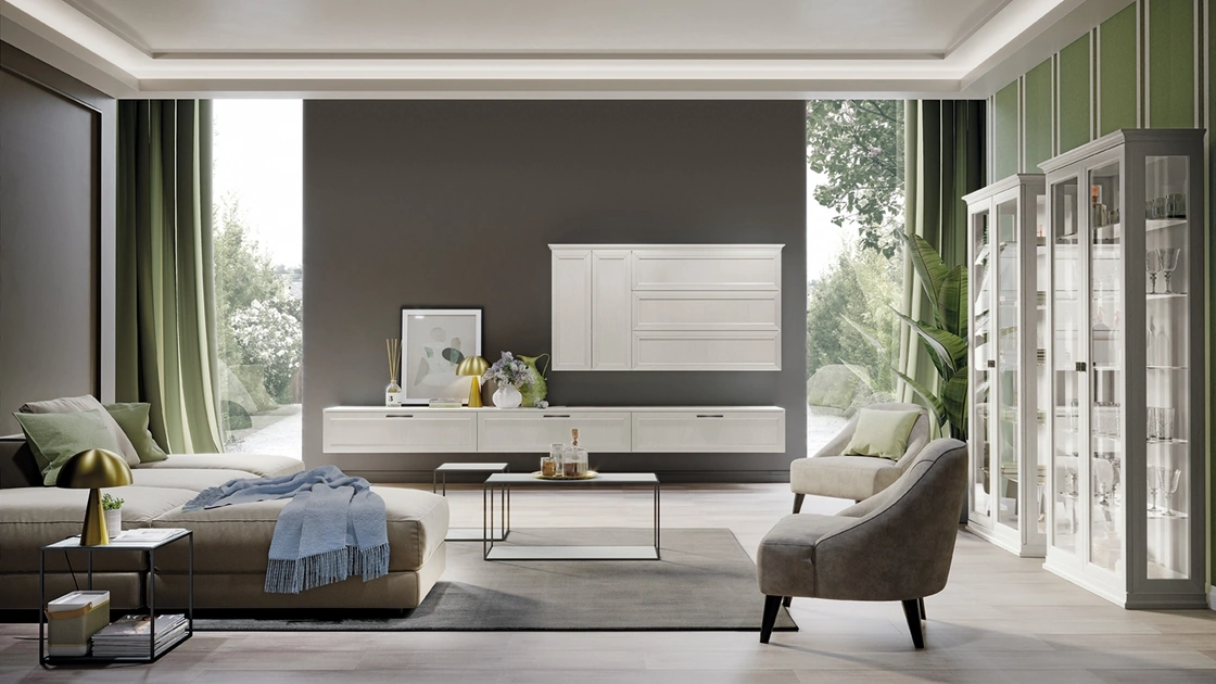 Vuoi ammobiliare un soggiorno operativo e pratico? Ti presentiamo la parete attrezzata Arcadia AS013 Colombini Casa dalle forme decise classiche.