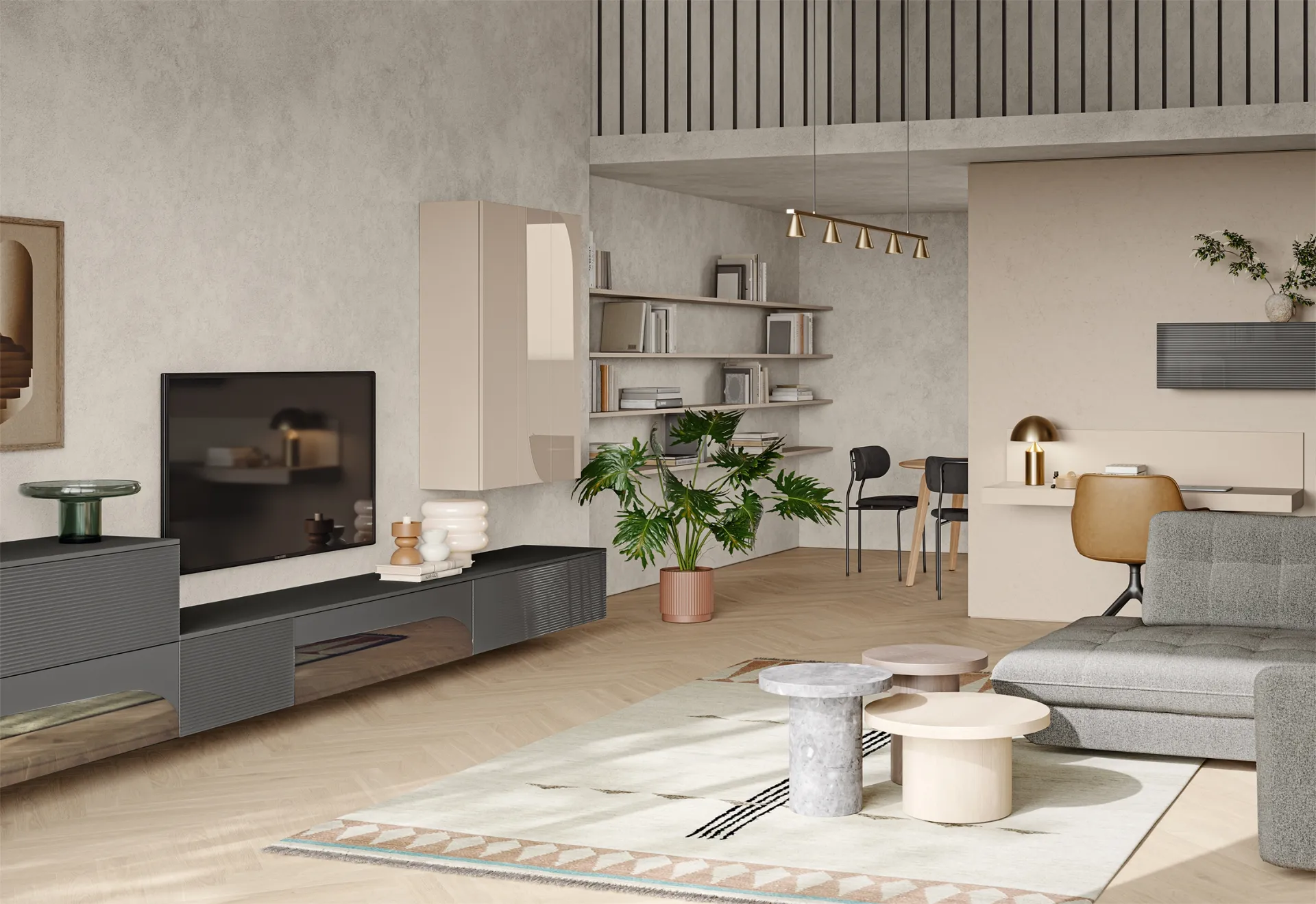 Pareti attrezzate e mobili giorno Colombini Casa: clicca e scopri il modello Eclettica EG001 e potrai completare stanze moderne di ogni genere.